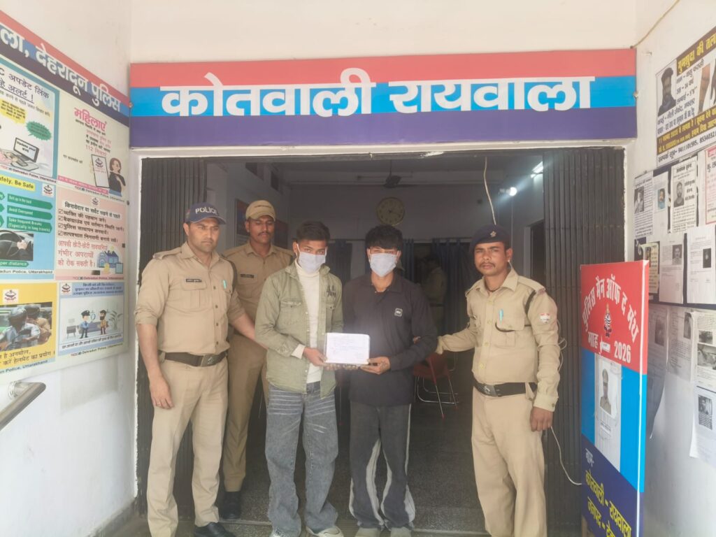 रायवाला कोतवाली क्षेत्र में घर का ताला तोड़कर हुई चोरी की घटना का पुलिस ने खुलासा कर दिया है। पुलिस ने दो कुख्यात चोरों को गिरफ्तार किया है। जबकि एक किशोर को भी संरक्षण में लिया है। पकड़े गए आरोपियों के पास से चोरी की गई नगदी बरामद कर ली गई है। रायवाला कोतवाली प्रभारी प्रशिक्षु आईपीएस प्रियव्रत जोशी ने बताया कि ठाकुरपुर निवासी अनिशा रावत के घर का ताला तोड़कर चोरी की वारदात हुई थी। तहरीर मिलने पर पुलिस ने मामले में मुकदमा दर्ज किया और चोरों को गिरफ्तार करने के प्रयास शुरू किये। इसी कड़ी में रेलवे अंडरपास के पास चेकिंग के दौरान पुलिस ने तीन संदिग्धों को भागते हुए देखा और उन्हें दबोच लिया। पूछताछ करने पर आरोपियों ने क्षेत्र में चोरी करने की घटना को कबूल किया। आरोपियों की पहचान अभिषेक थापा और रोहन थापा के रूप में हुई है। पूछताछ में उन्होंने स्वीकार किया कि वे नशे के आदी हैं और अपनी नशे की जरूरतों को पूरा करने के लिए ही उन्होंने बंद घरों को निशाना बनाना शुरू किया। उनके पास से करीब साड़े नो हजार रुपये नगद बरामद हुए हैं। पुलिस जांच में सामने आया कि पकड़े गए दोनों आरोपी पहले भी कई बार जेल जा चुके हैं। अभिषेक के खिलाफ रायवाला थाने में चोरी और नकबजनी के 4 मुकदमे दर्ज हैं। रोहन थापा: इसके खिलाफ रायवाला और ऋषिकेश थाने में चोरी के 5 मामले दर्ज हैं।